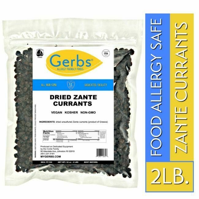 POWERHOUSE OF NUTRITION! Low-fat, cholesterol-free and high-protein. No Added Sugar Dried Zante Currants from Greece are dried berries of the small, sweet, seedless grape ‘Black Corinth.’ Eat as they are or add to yogurt, cereal, baking, etc. Unsulphured (sulfur dioxide has been identified as a key problematic substance involved with allergic reaction to sulfite in foods), and contains no added preservatives. Dried through the nutrient-saving evaporation process.