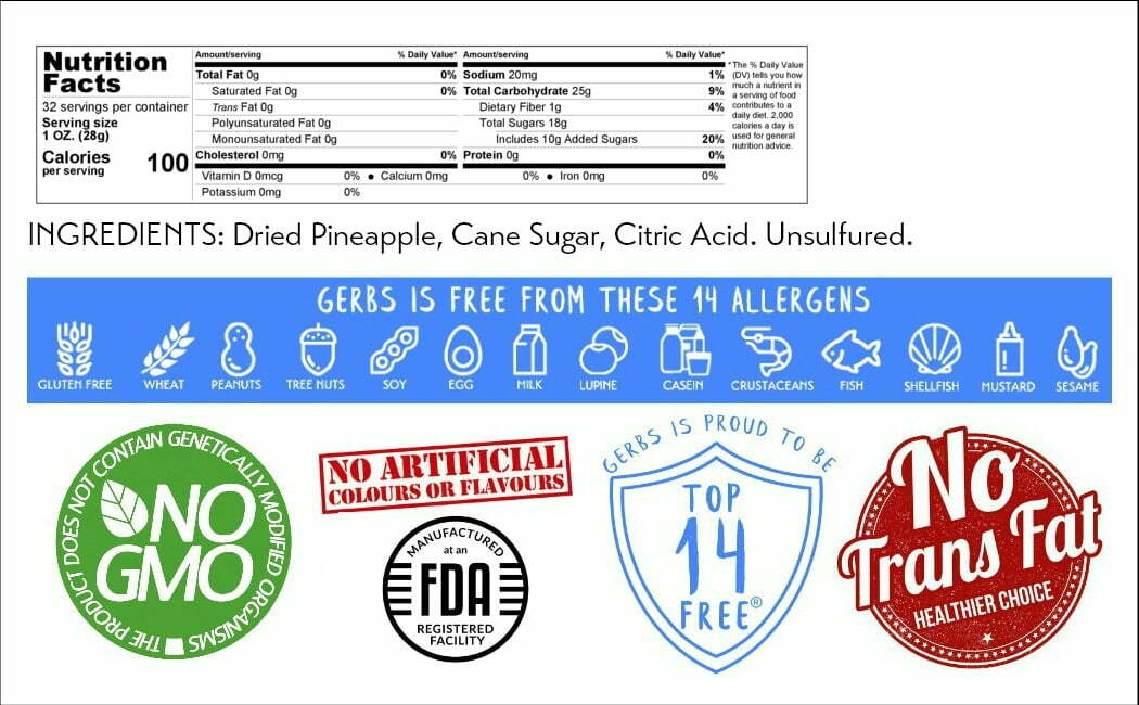 SCRUMPTIOUS! That’s what our customers say and you will too. Chewy sweet softness with the benefits of pineapple without the mess. Unsulphured (sulfur dioxide has been identified as a key problematic substance involved with allergic reaction to sulfite in foods), and contains no added preservatives. Dried through the nutrient-saving evaporation process.
