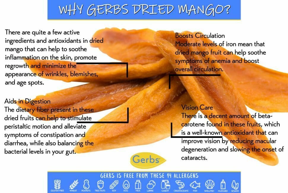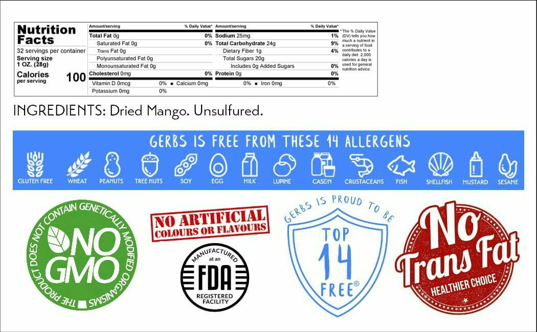 SOFTLY FLAVORFUL. Fresh, convenient mango slices without added sugar. Unsulphured (sulfur dioxide has been identified as a key problematic substance involved with allergic reaction to sulfite in foods), and contains no added preservatives.