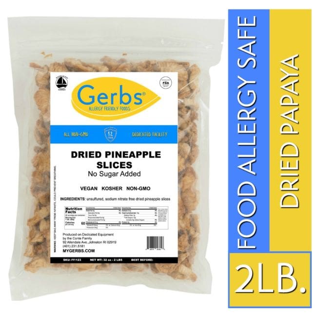 JUST PINEAPPLE. These days, that’s saying a lot. Just wonderful. No added sugar. Easy to eat, carry and store. Unsulphured (sulfur dioxide has been identified as a key problematic substance involved with allergic reaction to sulfite in foods), and contains no added preservatives.