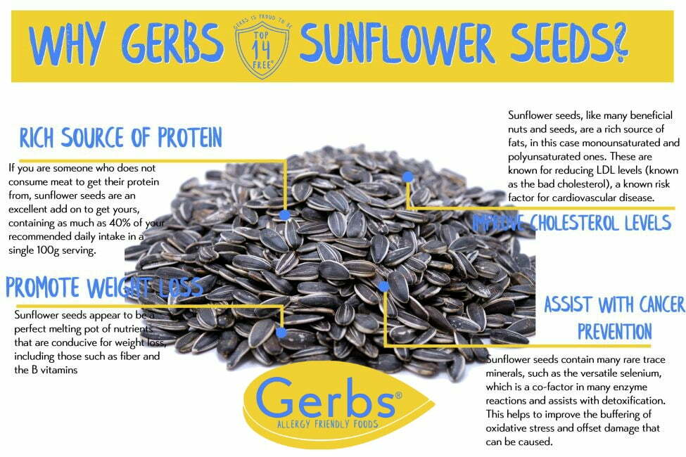 CHEWY SUN POWER. From the beautiful sunflower, nature provides these remarkable nutritionally complex seeds. Appease your hunger with our unsalted, dry roasted, non GMO, and naturally gluten-free Sunflower Seeds. Lots of Vitamin E, and helps lower your Cholesterol too. Perfect for those on low sodium diets. Read more about Sunflower Seeds below.