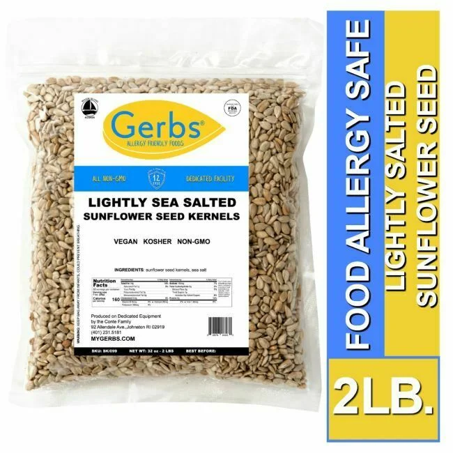 My whole family loves these sunflower seeds! They’re much crunchier than the seeds that you find at the grocery store and it’s good to know that we don’t have to worry about cross contact with other allergens. Thank you Gerbs!