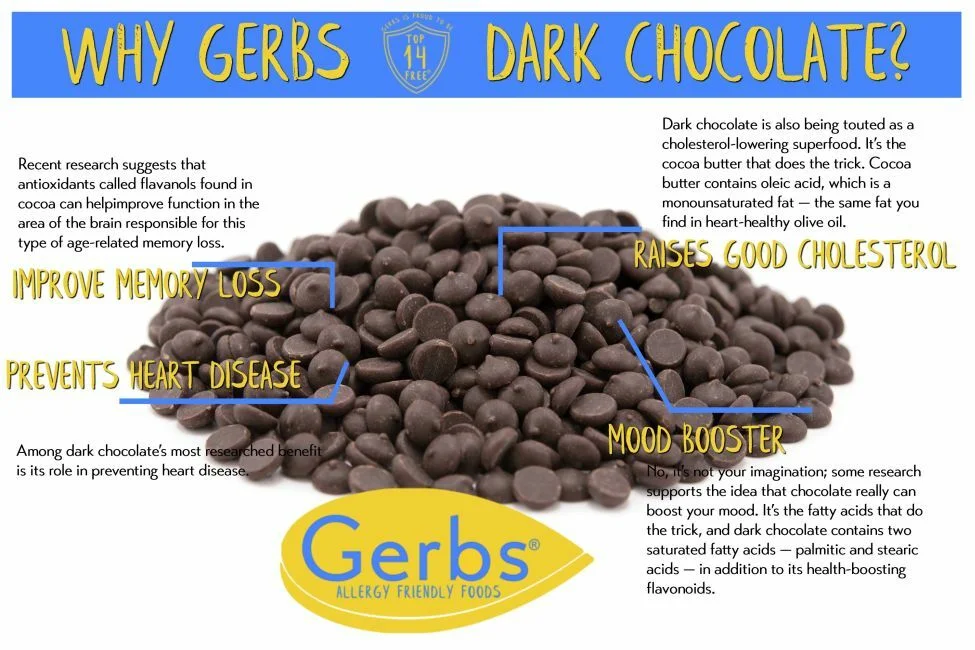 DARK CHOCOLATE CHIPS THAT ARE SATISFYINGLY NON-DAIRY DELICIOUS! Enjoy as a treat or in any recipe. The semi sweet cacao gives these dark chocolate chips a complex flavor. Compared to green tea, red wine, and many fruits and vegetables ounce for ounce, the cocoa in dark chocolate has greater flavonoid content.