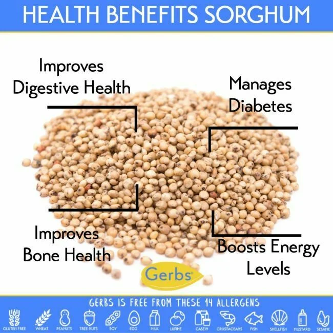 GLUTEN FREE SORGHUM. This ancient grain is neutral in flavor with a hint of sweetness. The major health benefits of sorghum include its ability to prevent certain types of cancer, help control diabetes, offer a dietary option to people with celiac disease, improve digestive health, build strong bones, promote red blood cell development, and boost energy and fuel production. Scroll down for cooking instructions.