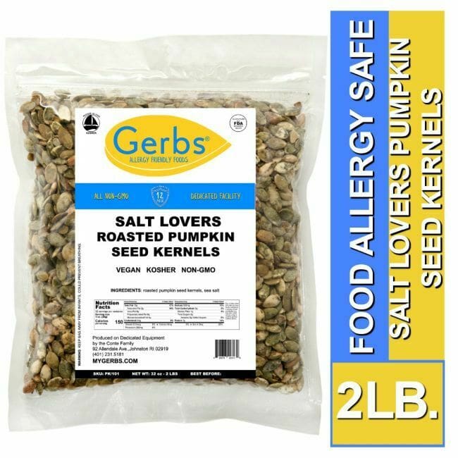 TRULY FOR SALT LOVERS. A sea salty, crunchy snack. These naturally gluten-free, GMO-free dry roasted pumpkin seeds contain all the essential amino acids, making them a complete protein source. Fresh and allergy friendly.
