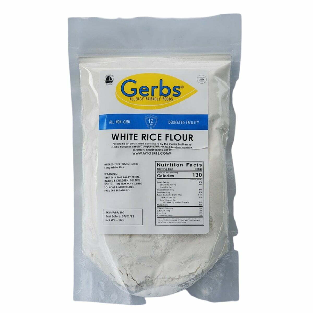 Gerbs Rice flour is a form of flour made from finely milled rice. It is distinct from rice starch, which is usually produced by steeping rice in lye. Rice flour is a common substitute for wheat flour. It is also used as a thickening agent in recipes that are refrigerated or frozen since it inhibits liquid separation.